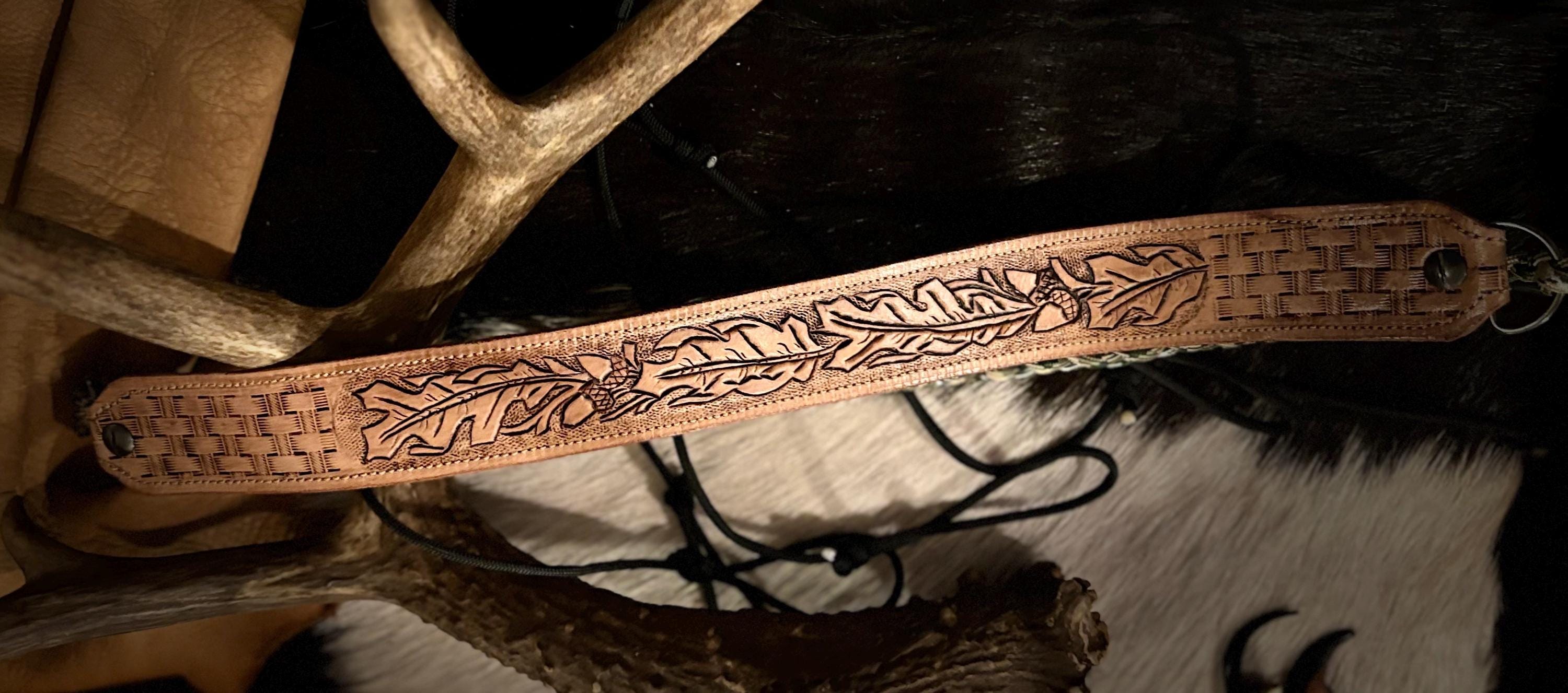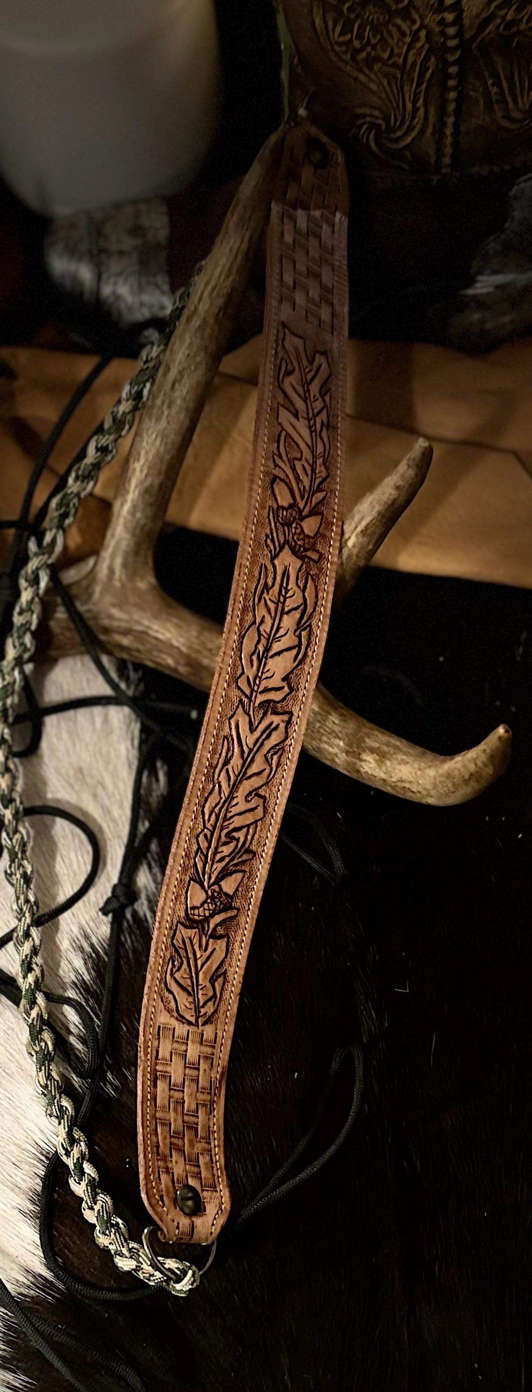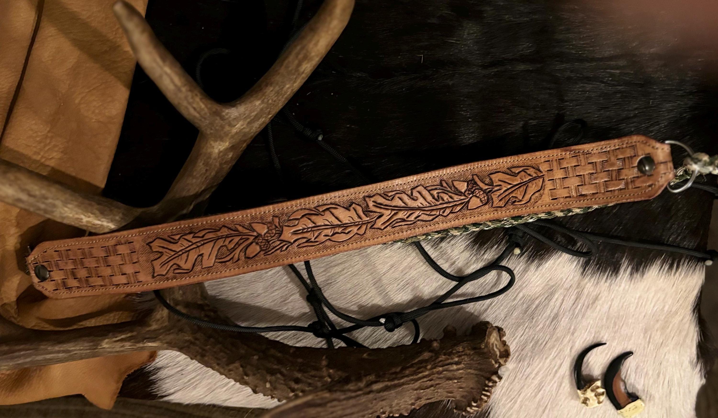 Quality hand made duck call holder with paracord call holders. authentic leather hand tooled, stained, and painted.