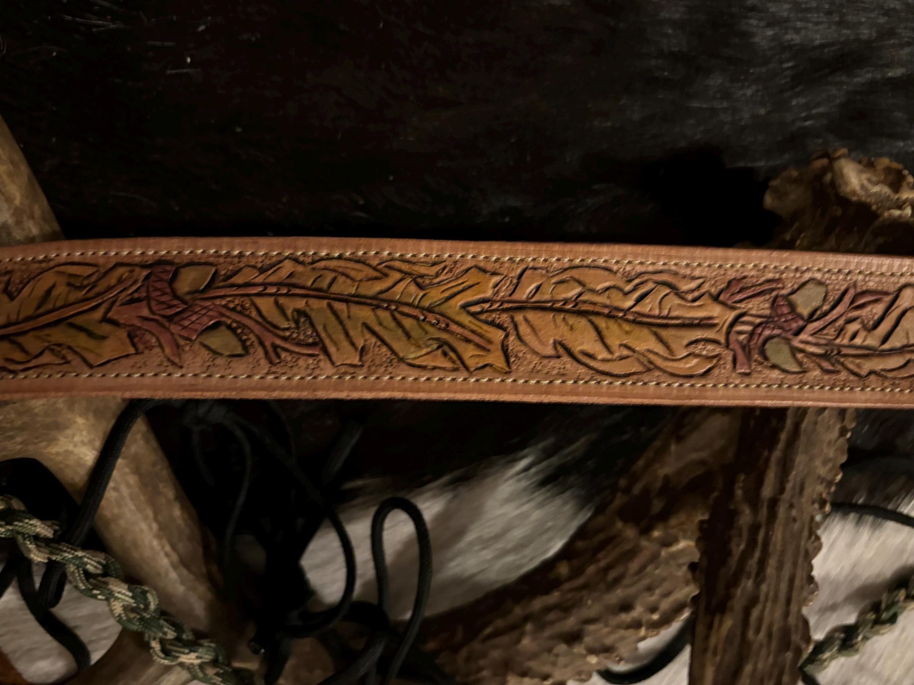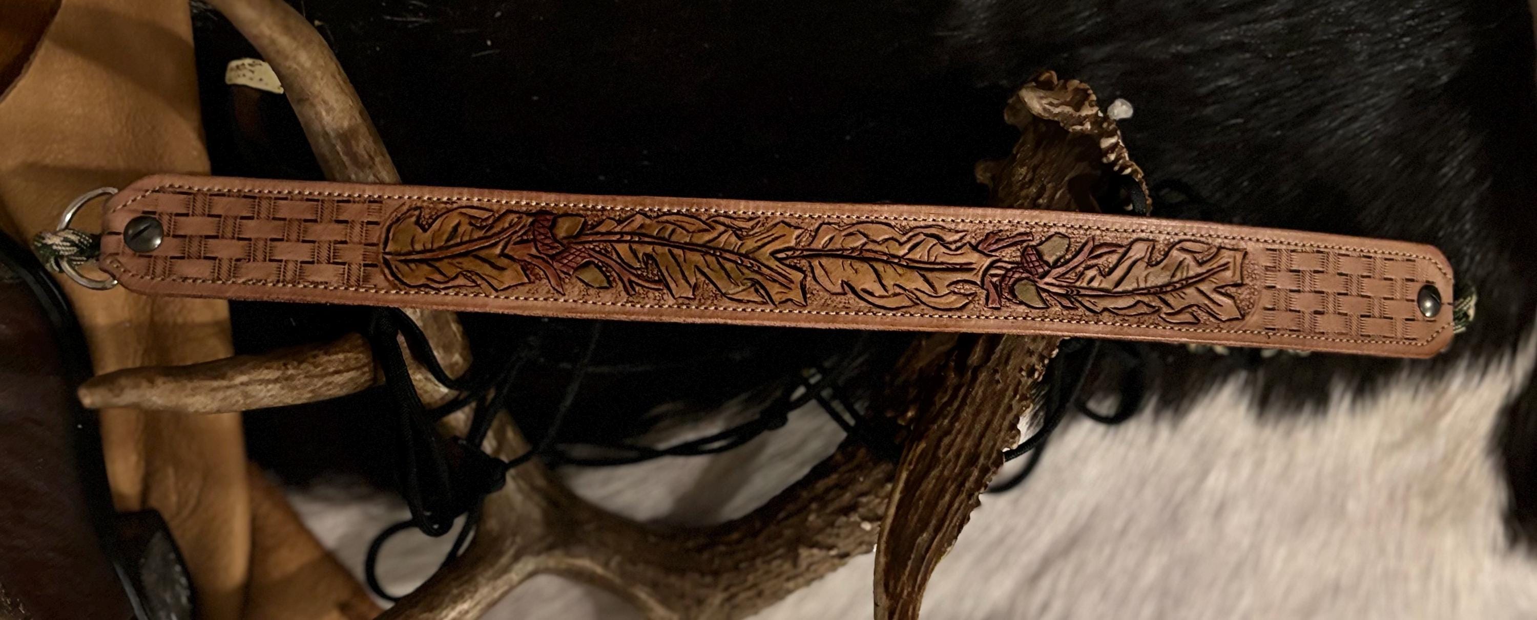 Quality hand made duck call holder with paracord call holders. Authentic leather hand tooled, stained, and painted. The bottom is strong hand braided paracord. Ready to hold all of your duck calls in one area.77
